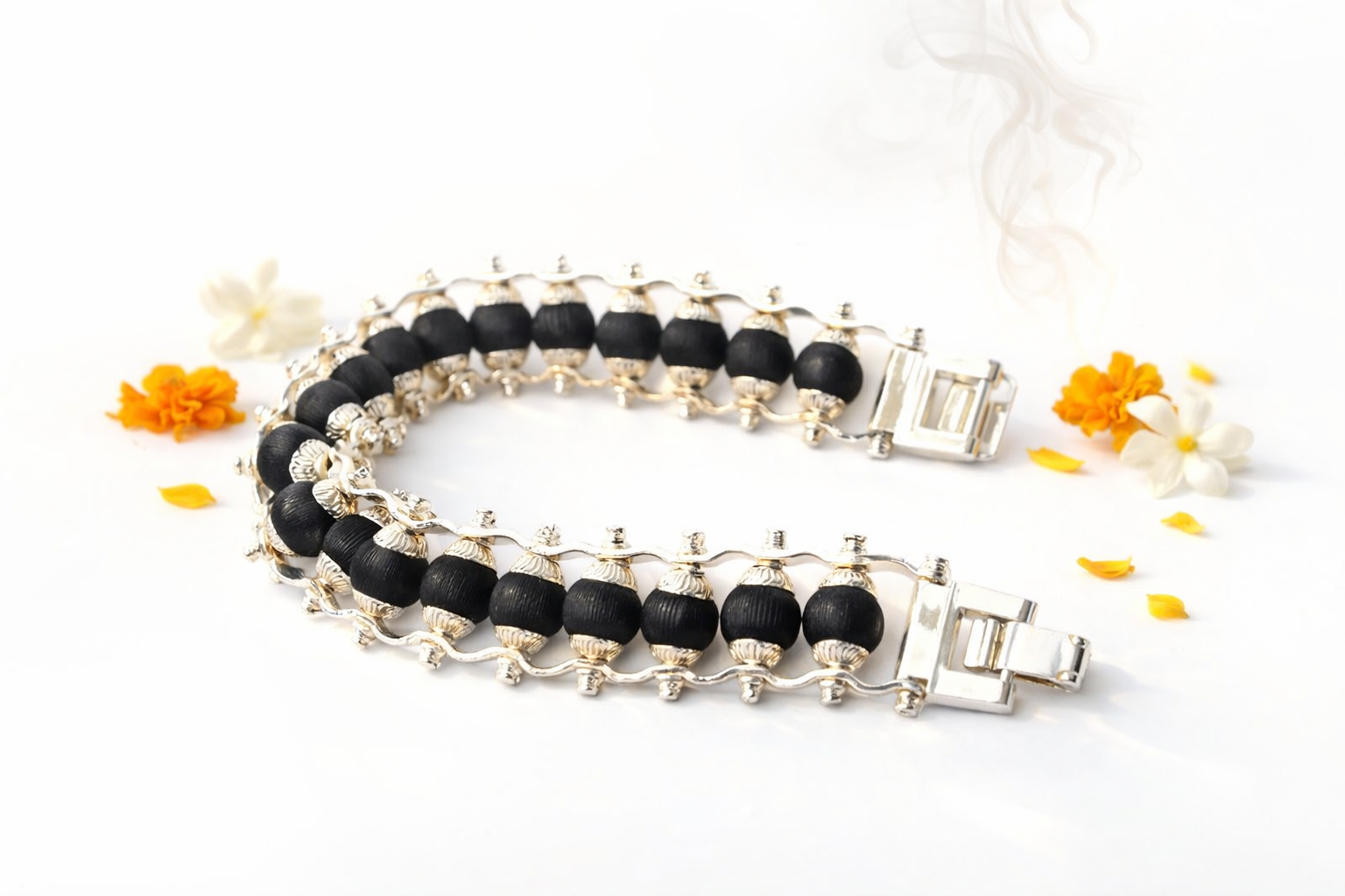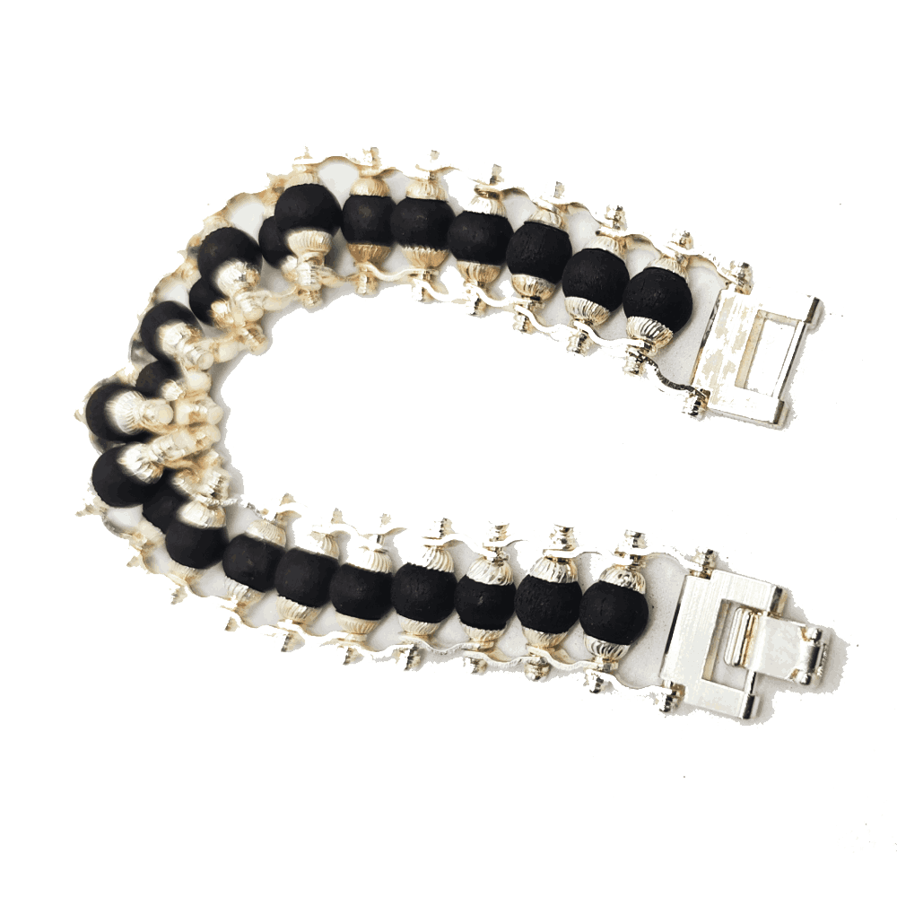 The karungali wood German silver bracelet 8mm combines authentic ebony wood beads with premium German silver caps, delivering powerful grounding and shielding in a stylish, everyday accessory.